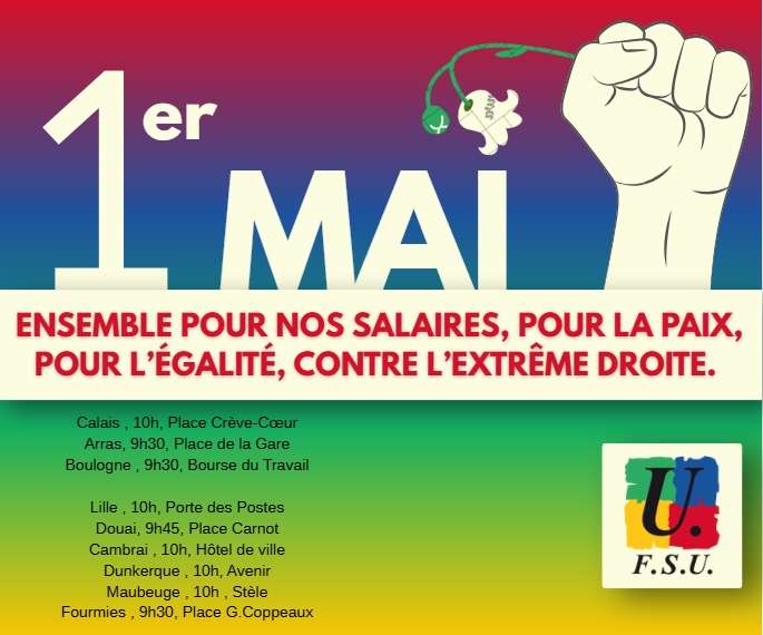 Enfin, nous manifesterons pour exiger des perspectives de progrès. La fuite en avant vers toujours plus de profits mène dans le mur. Il n’y a pas de planète B. Nous voulons que les richesses que nous produisons par notre travail financent la transition environnementale et notamment la sortie de la dépendance aux hydrocarbures, les services publics et la protection sociale. Nous voulons une industrie qui nous permette de produire local et durable. Nous voulons que le progrès technologique permette la réduction du temps de travail. Nous refusons la banalisation du racisme, de l’antisémitisme, du sexisme et des LGBTphobies. Face à l’extrême droite qui se nourrit des crises qu’elle provoque, nous appelons à un 1er mai populaire et antifasciste. Nous voulons vivre dans un monde de paix, d’égalité et de liberté !